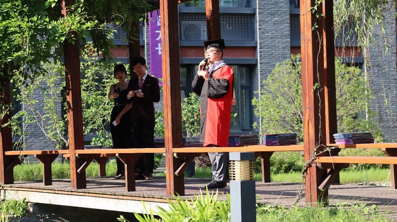 6月22日下午四点半,阳光灿烂,2021届本、硕、博毕业生学位授予仪式暨毕业典礼于pg电子试玩 大美楼环湖花园隆重举行。pg电子试玩 院长张生老师、院党委书记赵清老师、pg电子试玩 学位委员会主任梁晨老师、学位委员会委员刘成老师、李恭忠老师、张良仁老师、张学锋老师、罗晓翔老师、洪邮生老师、祝宏俊老师及全体本硕博毕业生出席仪式。