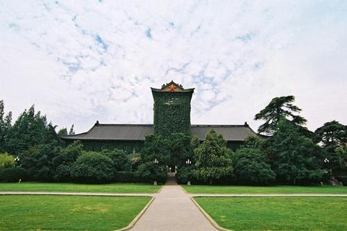南大鼓楼校区的北大楼建于 1917 年,坐北朝南,是美国建筑师司迈尔设计、陈明记营造厂承建的,大楼采用中国传统的建筑形式设计,糅合了西方的建筑风格:中部 5 层高的正方形塔楼,将整座建筑分成东西对称的两半;塔楼顶部是十字形脊顶,为西洋式钟楼的变体;砖木结构,砖是明代城墙砖,清水勾缝,整个建筑厚重、稳健、朴实、包容,给人兼收并蓄、藏而不露、行稳致远的哲学启示。百余年间,健硕茂盛的爬山虎已覆盖整个建筑外墙,甚至攀升至塔楼屋檐,垂挂如帘。